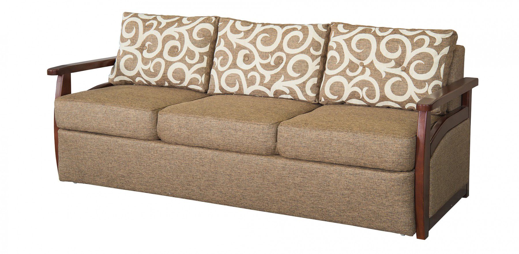 Диван оснащен механизмом раскладки «Дельфин», наполнитель пружинный блок и пружинная змейка, а также пенополиуретан.