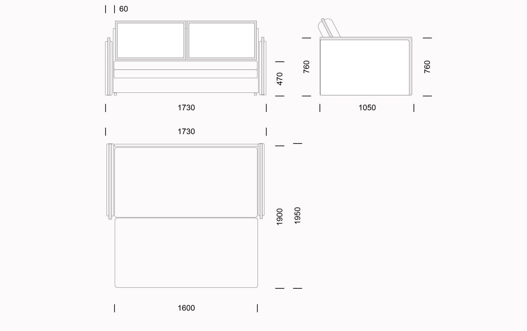 Габаритный размер, мм: 1730х1050х760