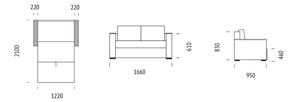 Габаритный размер: 1660х830х950 мм;