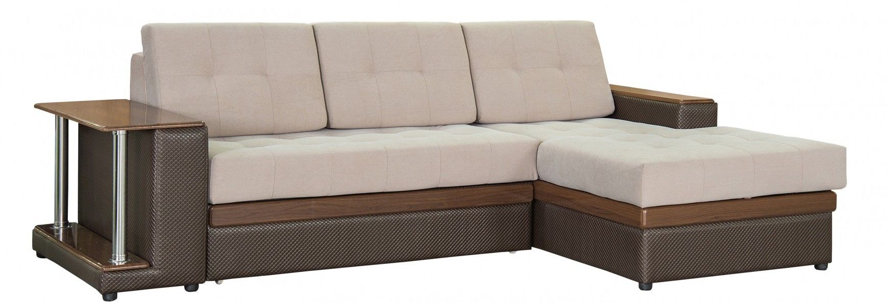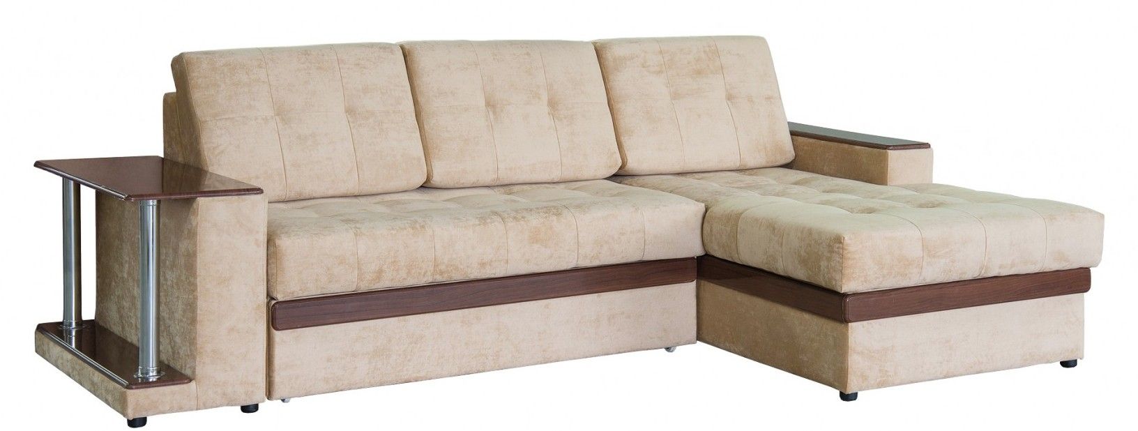По короткой стороне дивана быльце изготовлено с расчетом на использование его в качестве компактного столика, который отлично подойдет под напитки и закуски либо журналы.