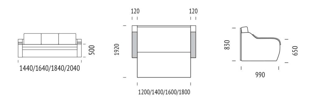 Габаритный размер дивана: 1440/1640/1840/2040х830х990 мм;