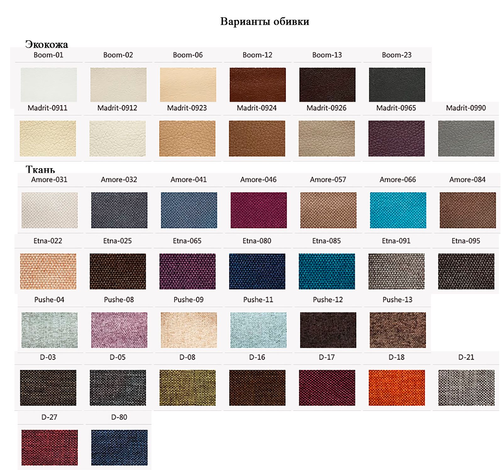 Цветовые варианты обивки вы можете посмотреть в разделе фото, для уточнения обращайтесь к менеджеру.