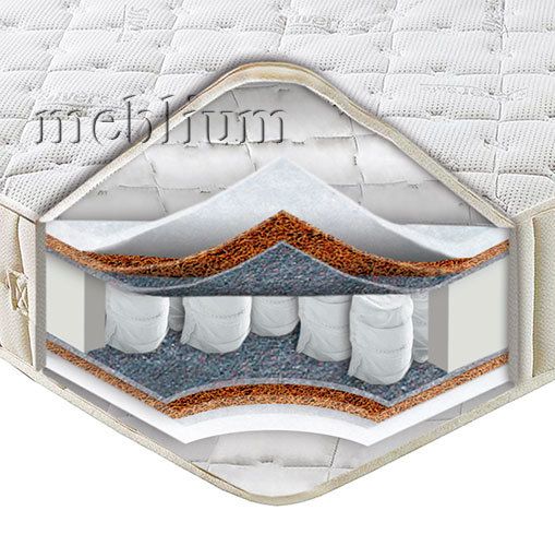 Наполнение : чехол - Жаккард Люкс, два слоя Симтекса, два слоя кокосовой койры, два слоя термопресованного войлока, блок пружин Pocket Spring.