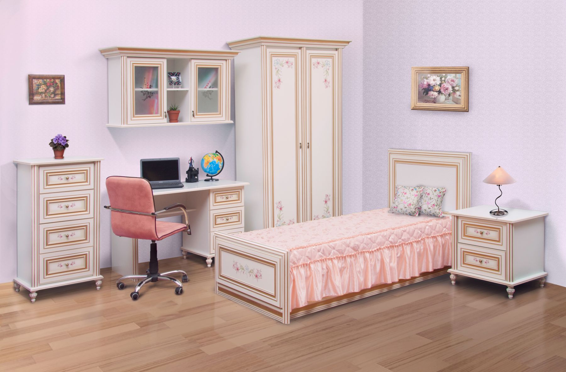 В стоимость входит: Шкаф 2Д, комод 0.6, кровать 1-сп (б / матраса, и каркаса), тумба прикроватная, стол, навесная тумба. Возможны другие комплектация, для уточнения обращайтесь к менеджеру.