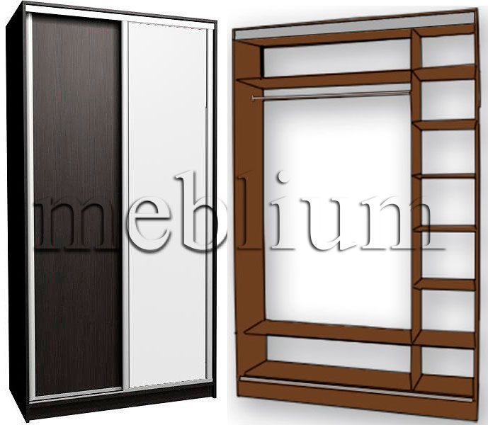 Варианты цветового исполнения шкафа-купе: бук, крем, махагонь, ольха, орех, орех лесной, дуб молочный, яблоня, вишня, орех темный, венге, синий уницвет.