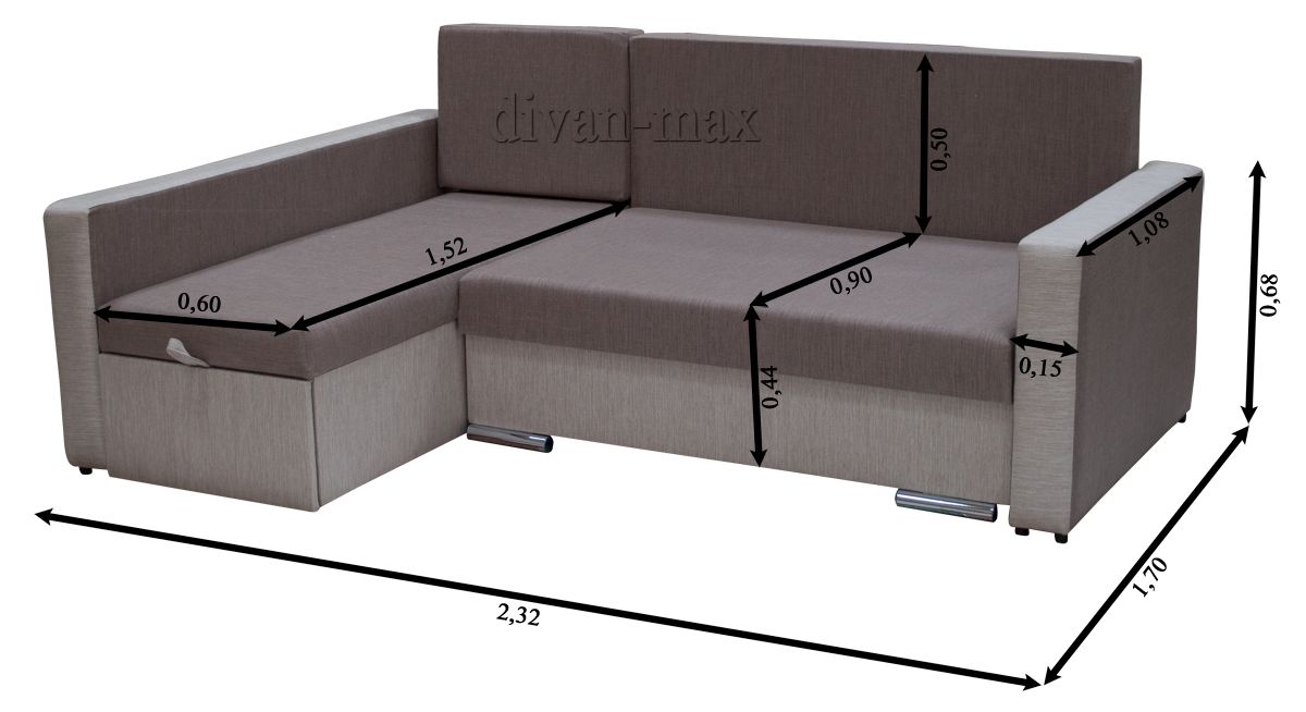 В сложенном состоянии: 2,32 х 1,70.